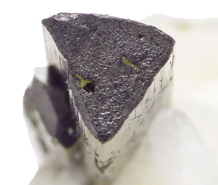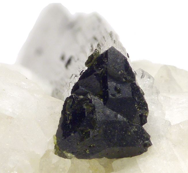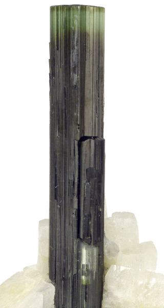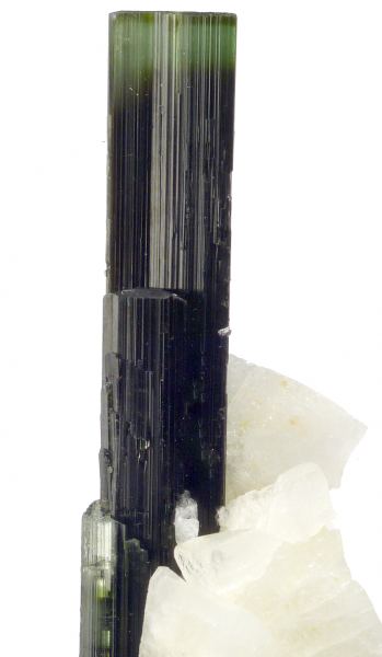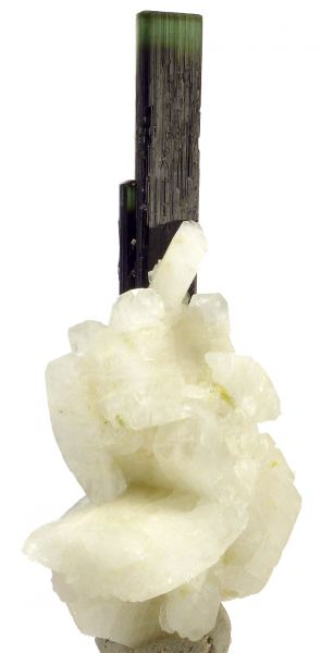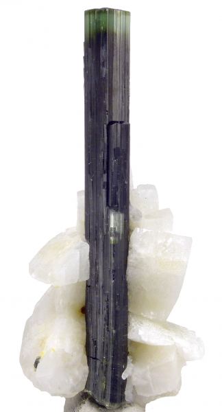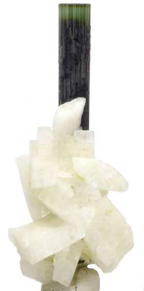 Very aesthetic specimen of well formed, sharp, dark green, doubly terminated crystal of tourmaline combined with white albite.;Data last checked on 24th Jun 2021 - specimen may no longer be available