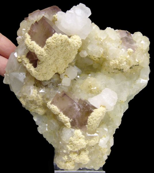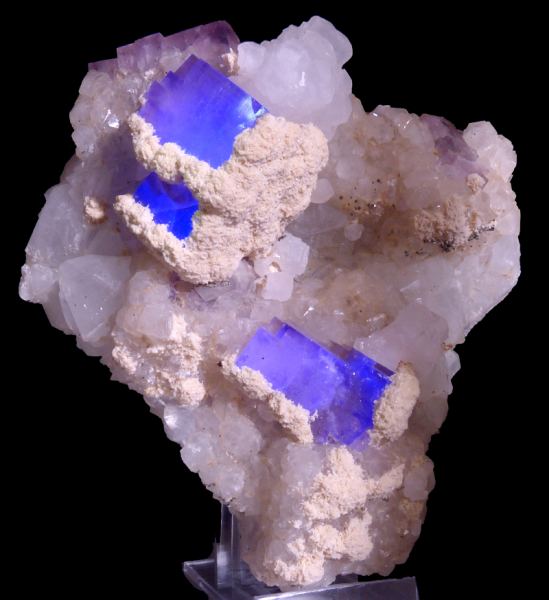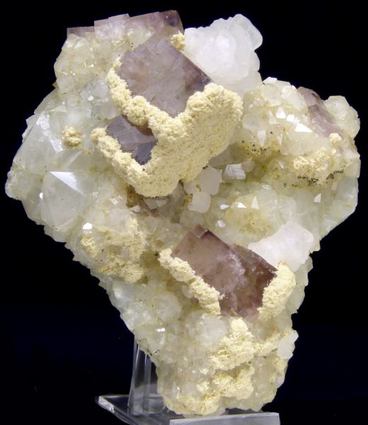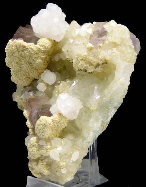 Great combo of lustrous fluorite crystals with calcite and dolomite on quartz. Pinkish color of fluorite, purple-blue under UV waves. Crystals size up to 3.2 cm. Great contrast. Good for the location.Data last checked on 24th Jun 2021 - specimen may no longer be available