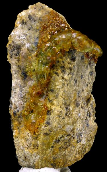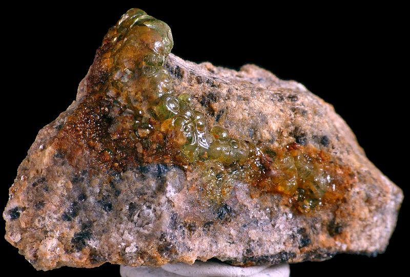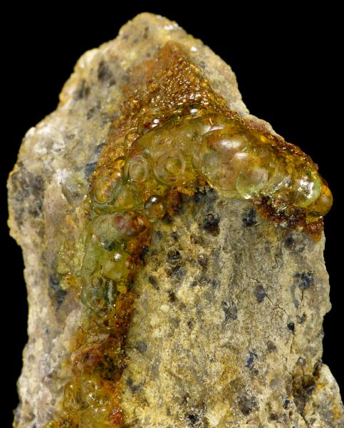 Unusual specimen of transparent botryoidal chalcedony var. hyalite on matrix, with unique daylight (daylight, LED and neon light) fluorescence in intense green color. This piece have the strongest daylight fluorescence possible from the find! In artificial light (incandescent) hyalite became amost colorless, and in UV light it is crazy neon-green. Fluorescence is caused by small uranium content. Cutting quality material. This type of hyalites are known from this only locality in the world. Great 3D form and luster! Very aesthetic & spectacular!Data last checked on 24th Jun 2021 - specimen may no longer be available