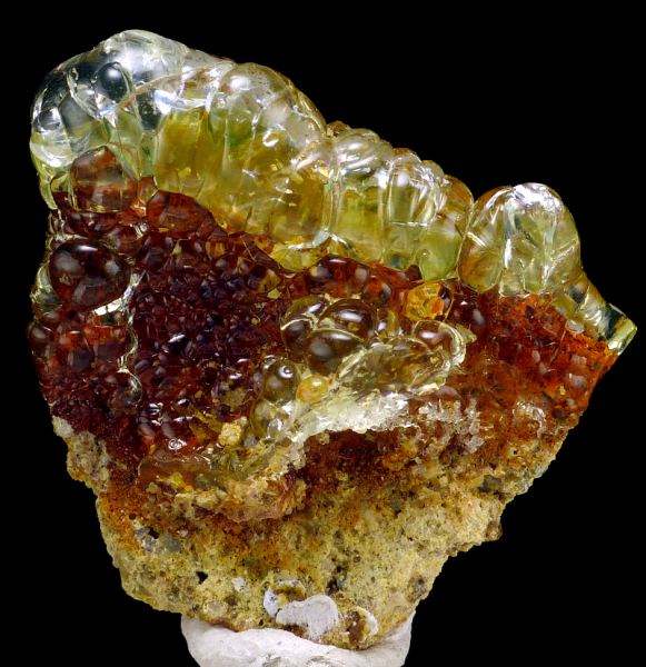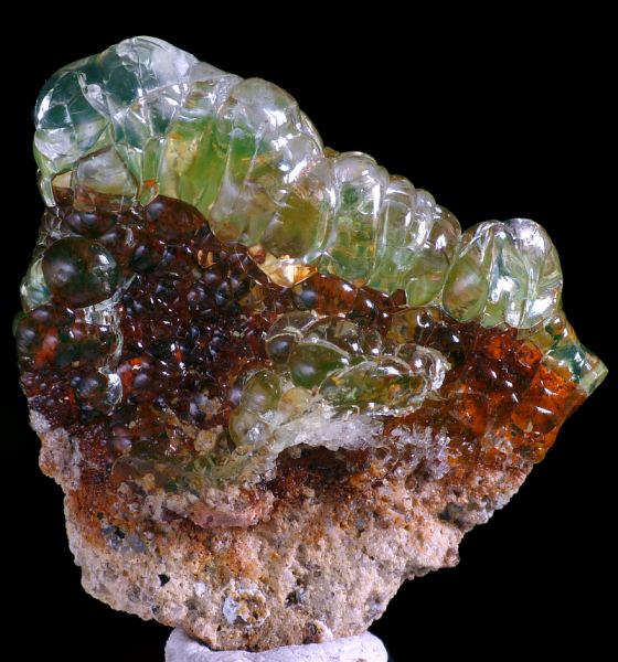 Unusual specimen of transparent botryoidal chalcedony var. hyalite on matrix, with unique daylight (daylight, LED and neon light) fluorescence in intense green color. This piece have the strongest daylight fluorescence possible from the find! In artificial light (incandescent) hyalite became amost colorless, and in UV light it is crazy neon-green. Fluorescence is caused by small uranium content. Cutting quality material. This type of hyalites are known from this only locality in the world. Great 3D form and luster! Very aesthetic & spectacular!Data last checked on 24th Jun 2021 - specimen may no longer be available