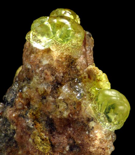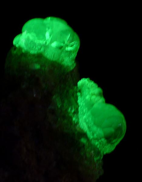 Unusual specimen of transparent botryoidal chalcedony var. hyalite on matrix, with unique daylight (daylight, LED and neon light) fluorescence in intense green color. This piece have the strongest daylight fluorescence possible from the find! In artificial light (incandescent) hyalite became amost colorless, and in UV light it is crazy neon-green. Fluorescence is caused by small uranium content. Cutting quality material. This type of hyalites are known from this only locality in the world.Data last checked on 24th Jun 2021 - specimen may no longer be available