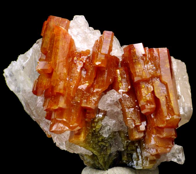 Great, aesthetic specimen of sharp and lustrous vanadinite crystals in great, reddish color with contrastive calcite from Mexico. Great luster and contrast. Big crystals for the location.;Data last checked on 24th Jun 2021 - specimen may no longer be available