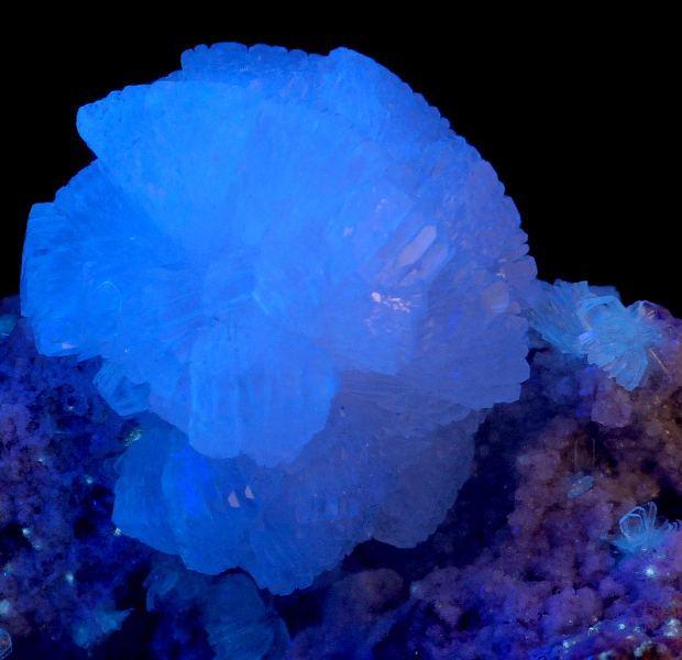 Interesting specimen of lustrous crystals of hemimorphite in light blue color on matrix from Congo. Great luster. Changes color in the UV light. ;;;Data last checked on 24th Jun 2021 - specimen may no longer be available