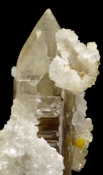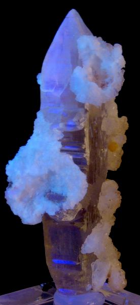 Great combo of elongated, sharp and lustrous cerussite crystal and hemimorphite from Congo. Great luster. Hemimorphite is fluorescent under UV light.;; Data last checked on 24th Jun 2021 - specimen may no longer be available