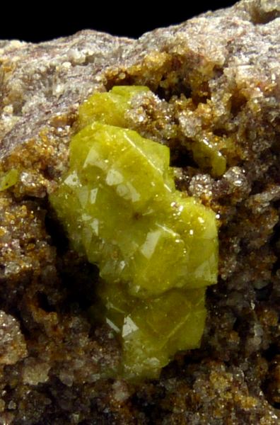 Cluster of yellow and lustrous mimetite crystals growing on willemite matrix. Unusual combo. Fluorescent under UV light.;; Data last checked on 24th Jun 2021 - specimen may no longer be available