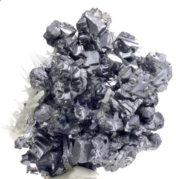 Spinel law twin galena with quartz crystals. Good luster.;; Data last checked on 24th Jun 2021 - specimen may no longer be available