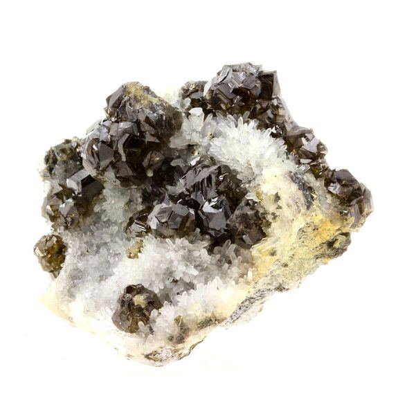 Sphalerite (Cleophane), Quartz from Krushev dol mine, Madan ore field, Smolyan Oblast, Bulgaria. Comes with certificate of authenticity Average Weight (Carats): 1400.1 ct Dimension (mm) : 77 x 53 x 54 mm Réf. : SKU026550Data last checked on 31st Dec 2021 - specimen may no longer be available