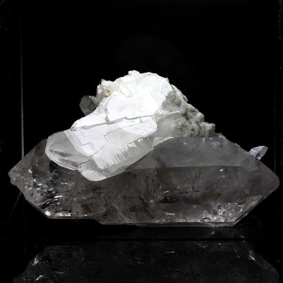 Quartz + Albite from Plan du Lac, Oisans, Savoie, Auvergne-Rhône-Alpes, France. Comes with certificate of authenticity Average Weight (Carats): 816.2 ct Dimension (mm) : 79 x 68 x 49 mm Réf. : SKU028432Data last checked on 31st Dec 2021 - specimen may no longer be available