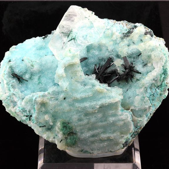 Atacamite, Gypsum, Chrysocolla f rom Lily Mine, Pisco Umay, Ica, Peru Comes with certificate of authenticity Average Weight (Carats) : 1308.0 ct (with base) Dimension (mm) : 85 x 66 x 47 mm Réf. : SKU032127Data last checked on 31st Dec 2021 - specimen may no longer be available