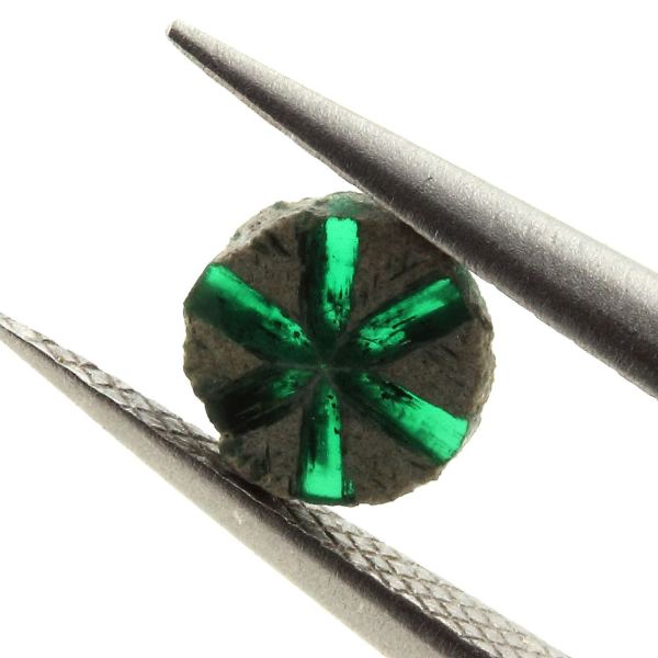 Emerald trapiche from Muzo, Colombia Comes with certificate of authenticity Average Weight (Carats) : 0.33 ct Dimension (mm) : 5 x 4.5 x 1.5 mm Réf. : SKU033654Data last checked on 31st Dec 2021 - specimen may no longer be available
