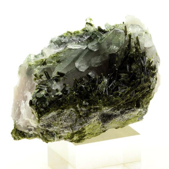 Epidote + Quartz from Le Cornillon, Bourg d'Oisans, Isère, Rhône-Alpes, France. Comes with certificate of authenticity Average Weight (Carats) : 961.0 ct Dimension (mm) : 70 x 50 x 40 mm Réf. : SKU037801Data last checked on 31st Dec 2021 - specimen may no longer be available