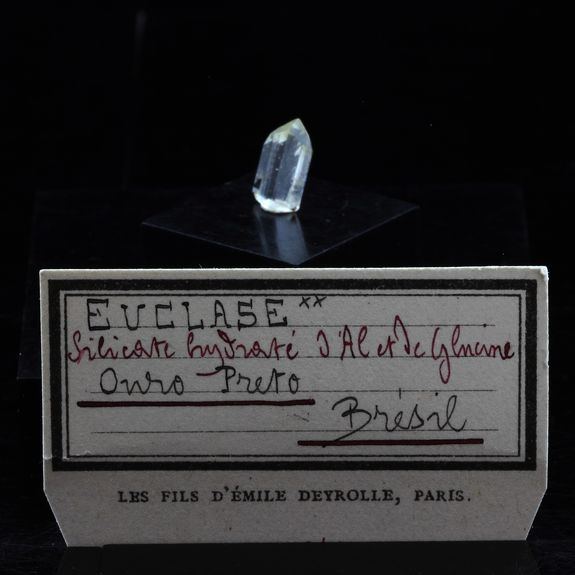 Euclase (ex collection Deyrolle) from Ouro Preto, Minas Gerais, Brazil Comes with certificate of authenticity Average Weight (Carats) : 1.5 ct Dimension (mm) : 10 x 6 x 3 mm Réf. : SKU036140Data last checked on 31st Dec 2021 - specimen may no longer be available