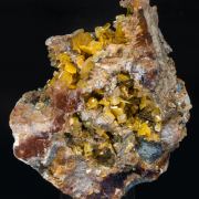 Wulfenite + Siderite from Touissit, Touissit-Bou Beker District, Jerada Province, L'oriental Region, Morocco Comes with certificate of authenticity Average Weight (Carats) : 300.0 ct Dimension (mm) : 57 x 47 x 30 mm Réf. : SKU039829Data last checked on 31st Dec 2021 - specimen may no longer be available