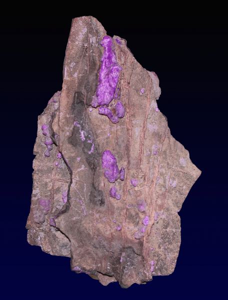 Within the last 2 years, a small pocket of crystallized Sugilite was found at the N'Chwanning III mine. Sugilite is typically found at the Wessels mine, in solid chunks, so this was an amazing discovery. Fibrous purple crystals grow in the seams of the Aegerine matrix. The Sugilite is an electric purple (daylight) that shifts to an electric magenta under incandescent light. This piece really shows the layers of the aegerine "sandwiching," the sugilite crystals. It's quite large.Data last checked on 25th Jun 2021 - specimen may no longer be available