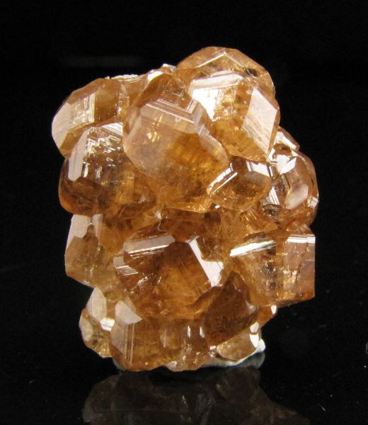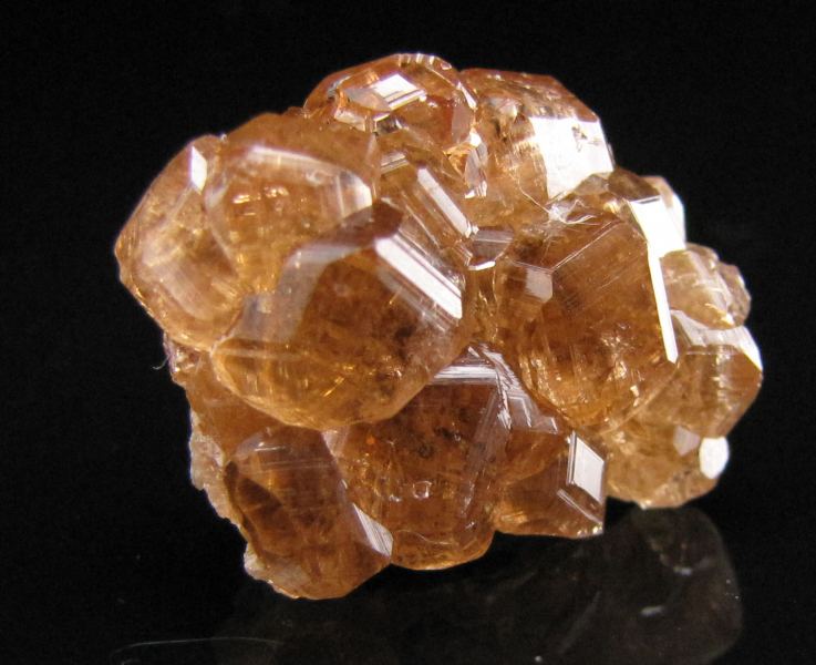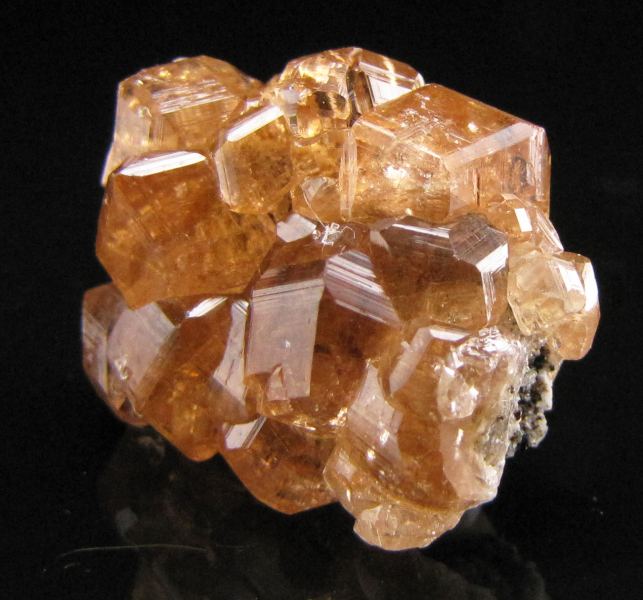 Beautiful cluster of bright, gemmy Hessonite garnets. Production has been sporadic at best, with a few small pockets found with hand tools in the last 3 years, otherwise there's been nothing since the 1980's. This piece is super bright, the color is slightly lighter in person. No damage. Data last checked on 25th Jun 2021 - specimen may no longer be available