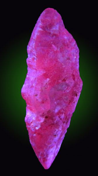 This pinkish/lavender sapphire has an amazing fluorescence (long wave)! It is pictured front and back, regular lighting and fluorescent, both pics are highly accurate. It's in good shape, without any visible dings, but with a little natural "roughing," on one lower face, where there was some contact. It weighs 9.26 carats.Data last checked on 25th Jun 2021 - specimen may no longer be available