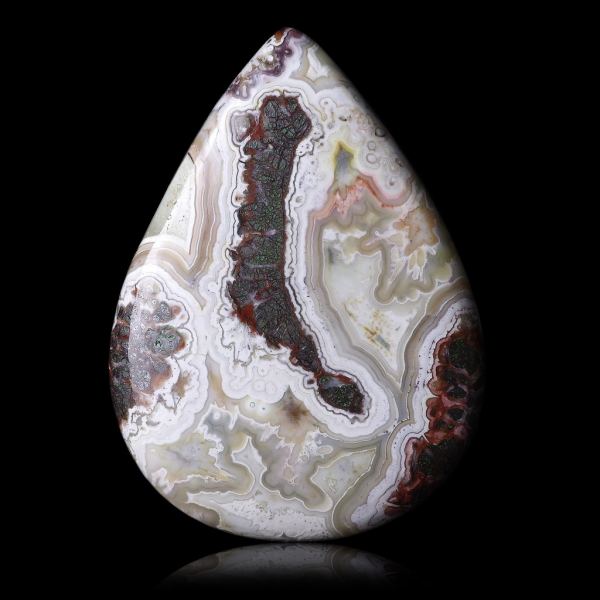 Beautiful crazy lace agate pear cabochon. B. Chatenet's ex-collection. Weight : 37,69 ctData last checked on 25th Jun 2021 - specimen may no longer be available
