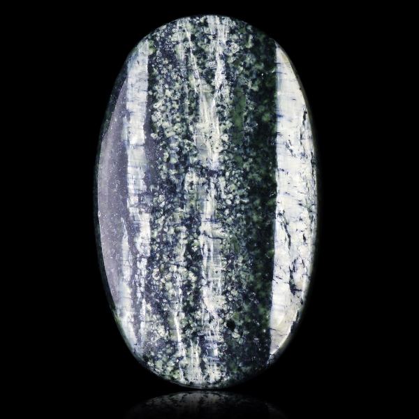 Excellent striped serpentine (chrysotile and lizardite) cut in cabochon from B. Chatenet's ex-collection. Weight : 36,00 ctData last checked on 25th Jun 2021 - specimen may no longer be available
