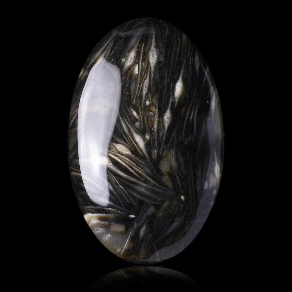 Excellent fusulinid fossil (feather agate) cabochon from B. Chatenet's ex-collection. Weight : 45,00 ctData last checked on 25th Jun 2021 - specimen may no longer be available