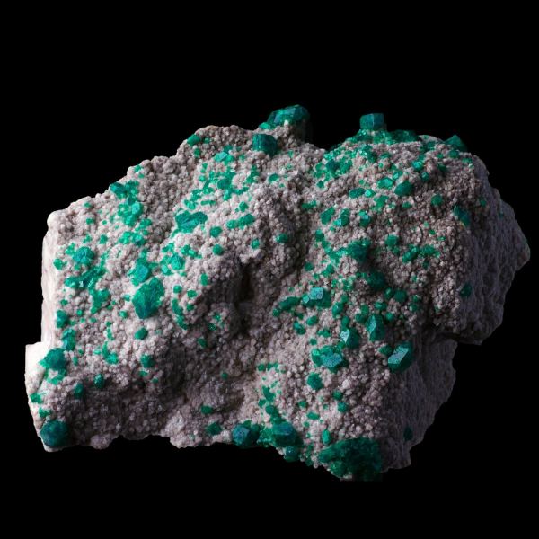 Beautiful shiny dioptase crystals on dolomite and associated with cerussite from P.olik's ex-collection.Data last checked on 25th Jun 2021 - specimen may no longer be available