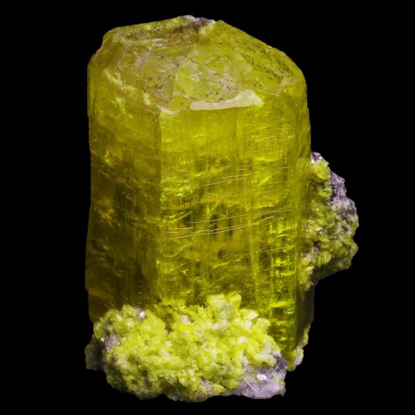 Amazing and rare terminated ettringite crystal on matrix with a yellow vivid color. The crystal has gemmy quality.Data last checked on 25th Jun 2021 - specimen may no longer be available