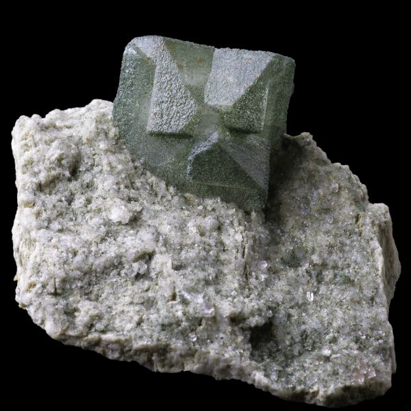 Excellent cyclic twinned adularia crystal with chlorite on matrix. P.olik's ex-collection.Data last checked on 25th Jun 2021 - specimen may no longer be available