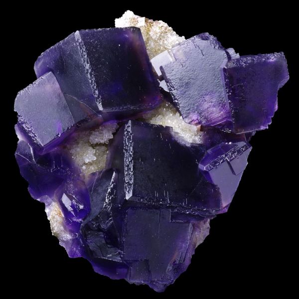 Amazing group of purple fluorite cubes with color zoning on quartz. Very aesthetic.Data last checked on 25th Jun 2021 - specimen may no longer be available