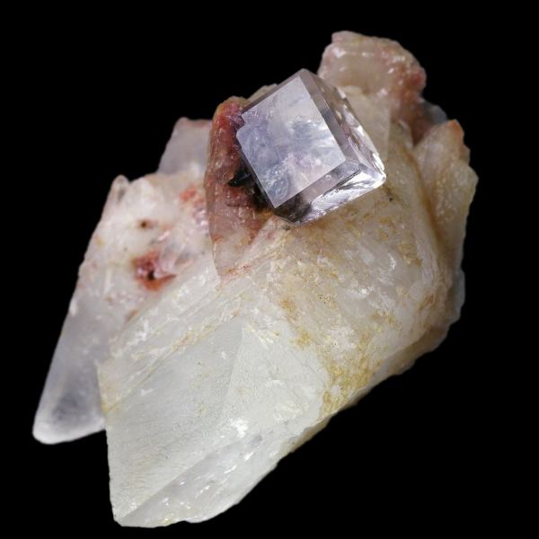 Beautiful colorless optical fluorite cube with very interesting truncations on calcite scalenohedra. Exceptional transparency.Data last checked on 25th Jun 2021 - specimen may no longer be available