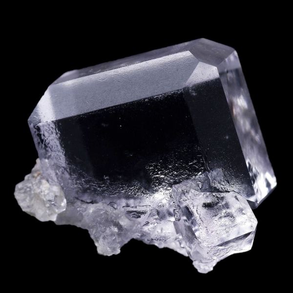Beautiful colorless optical fluorite cube with very interesting truncations. Exceptional transparency.Data last checked on 25th Jun 2021 - specimen may no longer be available