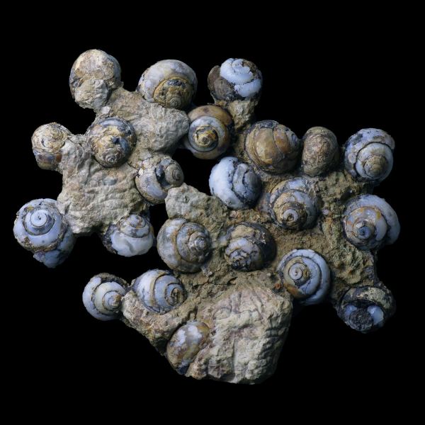 Beautiful and exceptional group of 22 Helix Ramondi land snail epigenised in blue lussatite on matrix. Really rare transformation described by Lacroix and Lecoq in the mid 19th century. Specimen prepared by us, the fossils are all in their original position and have been consolidated. Museum specimen consolidated to be exhibit. Just amazing presentation !Data last checked on 25th Jun 2021 - specimen may no longer be available