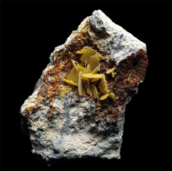 Good group of yellow wulfenite on matrix, rare origin !Data last checked on 25th Jun 2021 - specimen may no longer be available