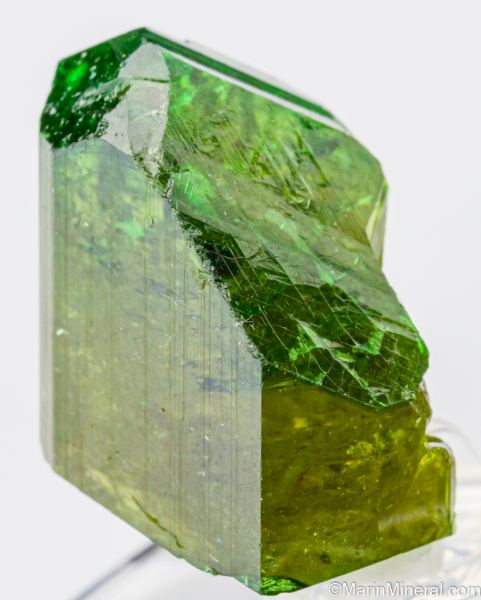 Gem Dravite Tourmaline crystal from Tanzania. It has high luster and the transparency is way above average. The color is superb with a more yellow green on the lower half and an intense 'chrome' green at the termination. Partially double-terminated with some Calcite attached to the backside. Often called 'Chrome Tourmaline' these are a chromium and vanadium rich Dravite.Data last checked on 25th Jun 2021 - specimen may no longer be available