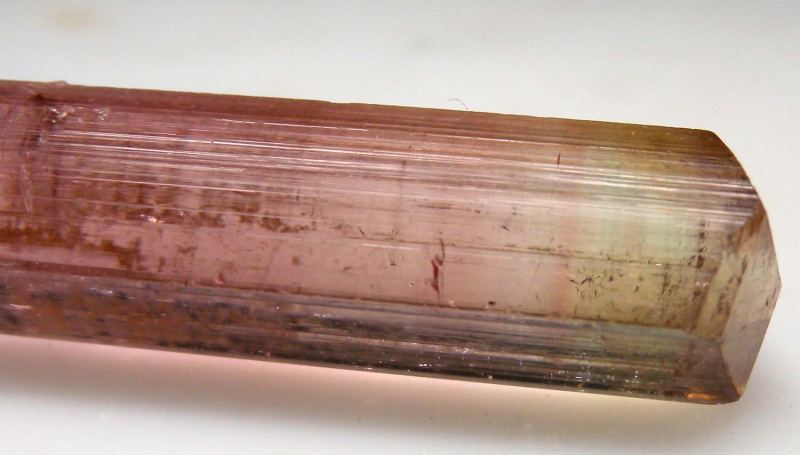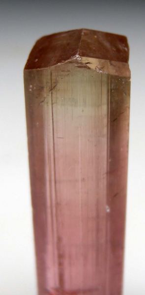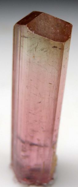 Rare gem pink Tourmaline crystal with a greenish yellow termination from Nepal. This is an excellent crystal for the locality as most are very thin, pencil-like crystals. Though not as well known, Nepal has produced small amounts of some very high quality Tourmaline. Found long ago, this crystal is undamaged and weighs 7.23 grams.Data last checked on 25th Jun 2021 - specimen may no longer be available