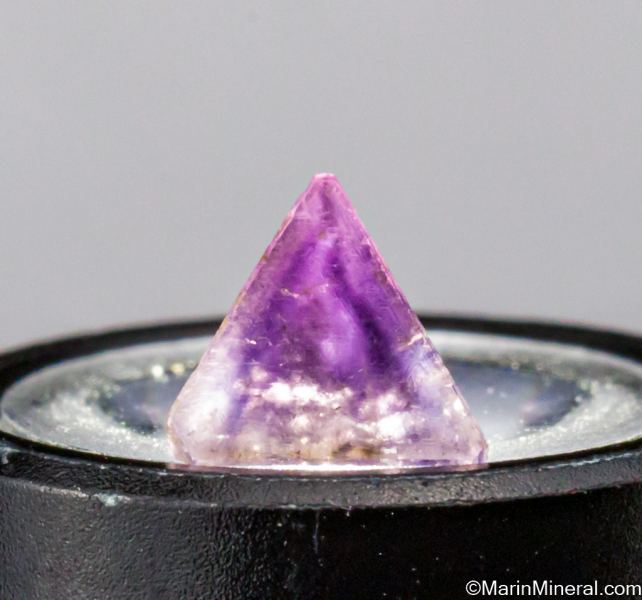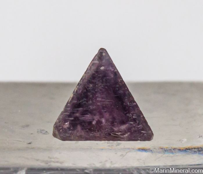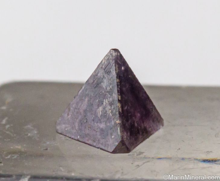 Complete and undamaged tetrahedron of Chambersite, a rare mineral found in salt formations in a small number of localities worldwide. Translucent 'Amethyst' purple in color and collected by Fred Pough in 1970. Ex. Chuck Trantham collection.Data last checked on 25th Jun 2021 - specimen may no longer be available