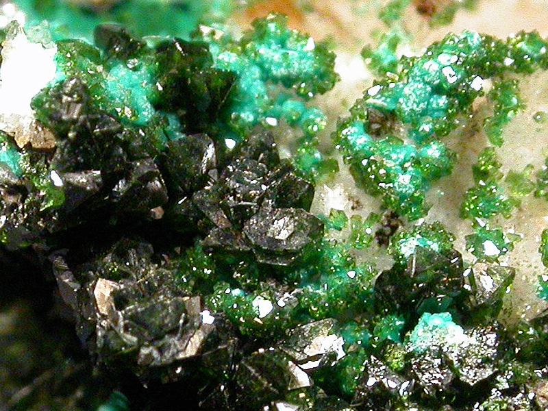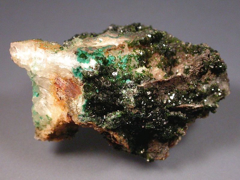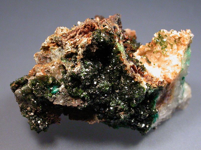 Olivenite with Malachite, Pseudomalachite, Goethite, Quartz