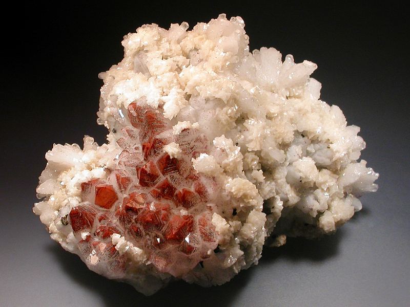 Calcite & Dolomite on Quartz with Hematite (Ref: 616_)