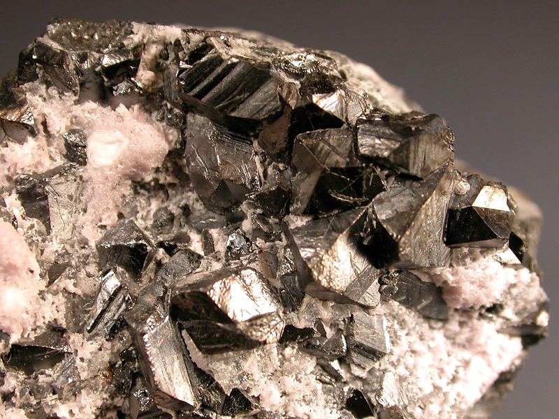 Well formed lustrous alabandite crystals reaching 4mm with a light dusting of pale pinkish rhodochrosite. Many of the alabandite crystals are chipped /damaged but some are pristine. A good example of alabandite and a pretty specimen.Data last checked on 11th Aug 2021 - specimen may no longer be available