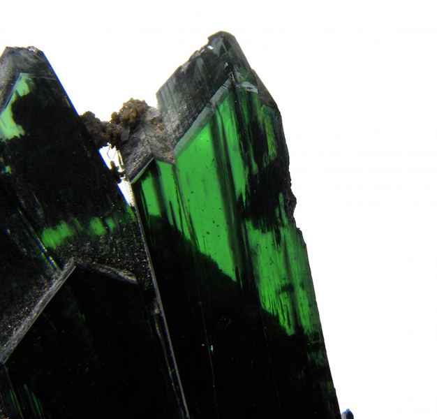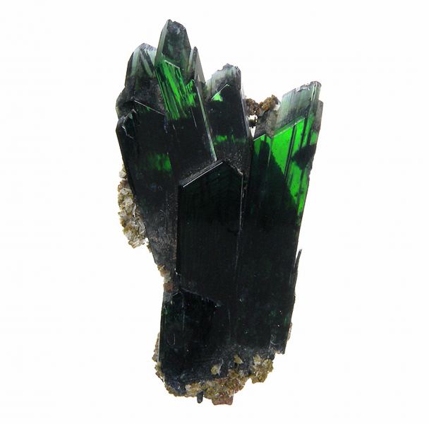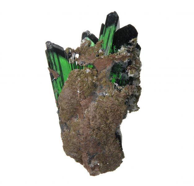These fairly new Vivianite crystals have without question the best luster and often gemminess of any Vivianite specimens to date from this country, or virtually any other country. Another outstanding feature is the wonderful color contrast between the vivid emerald green of the Vivianite and the alData last checked on 23rd Aug 2021 - specimen may no longer be available