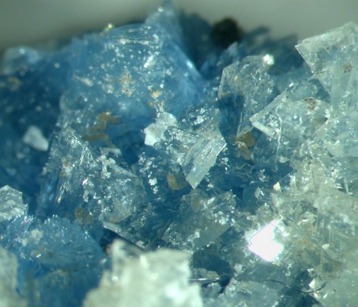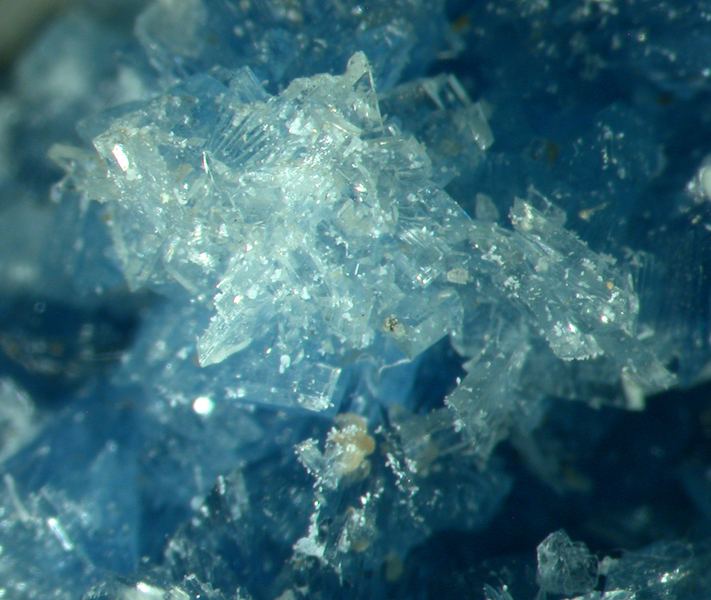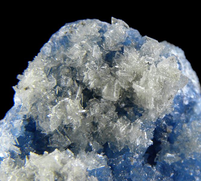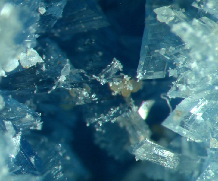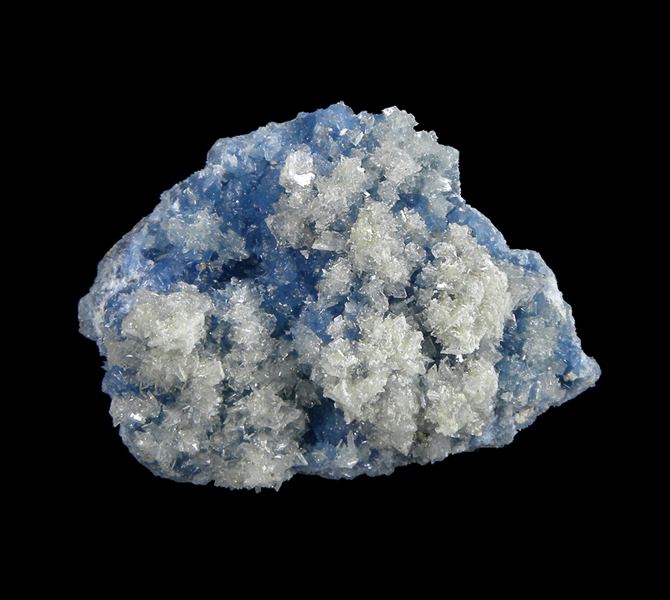 This piece was mined in June of 2010. It is a remarkable, very well crystallized, ridiculously rare, specimen consisting of small, bladed, beautiful blue color, radiating aggregates of Vauxite coated by with tabular blades of greenish-white Paravauxite on very minor clay (probably decomposed AllophData last checked on 23rd Aug 2021 - specimen may no longer be available