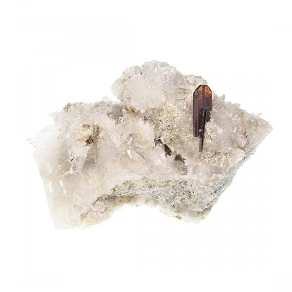 A pair of slender, top quality, sharp, lustrous, gemmy, rich bengal-orange colored crystals measuring up to 1.3 cm sit among sharp, lustrous, colorless / white Quartz crystals on matrix. You can see the lovely striped patterns in the Brookites created by the black internal phantoms which in my mindData last checked on 23rd Aug 2021 - specimen may no longer be available