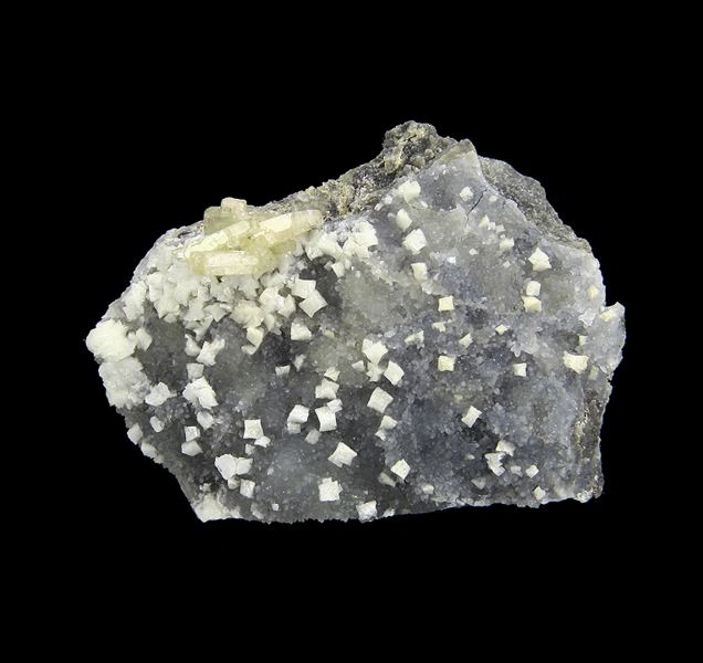 A wonderful Barite specimen from the Black Cloud featuring very sharp, well-formed, lustrous crystals of pale golden color Barite “blades” associated with small white Dolomite rhombs on blue-grey Chalcedony matrix. Great quality for Barite, and a nice change of pace from the other Leadville pieData last checked on 23rd Aug 2021 - specimen may no longer be available