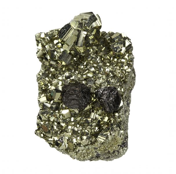 A beautiful pair of matched complex, highly modified, deep reddish-black groups of Sphalerite are smartly perched atop a “mound” of HIGHLY lustrous, bright, metallic, golden striated Pyrite pyritohedra. No real damage to speak of on the display side, and very attractive for a smaller Gilman speData last checked on 23rd Aug 2021 - specimen may no longer be available
