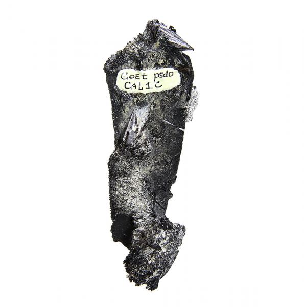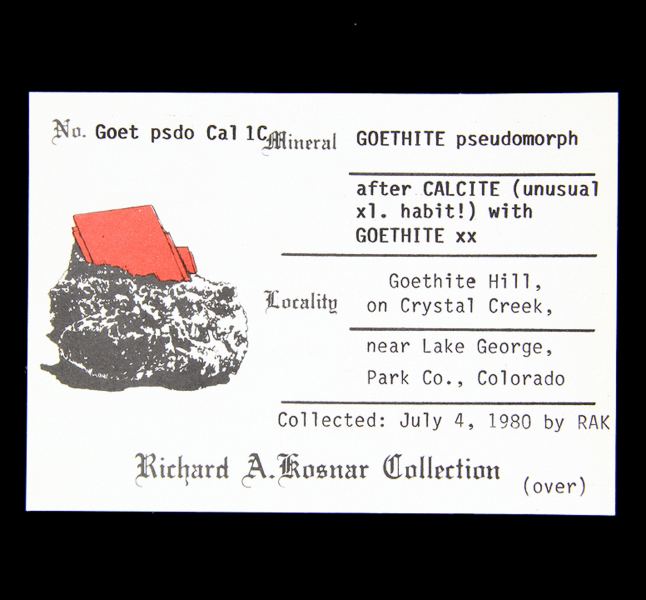 This piece was collected by my father on Goethite Hill on the 4th of July, 1980. The piece is most interesting because it is actually a Goethite pseudomorph after a Calcite crystal (but it could possibly be replacing Quartz) which is accented with small metallic golden-brown blades and “sprays”Data last checked on 23rd Aug 2021 - specimen may no longer be available