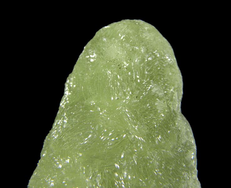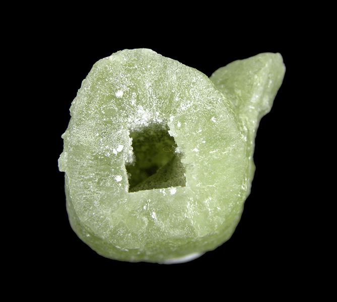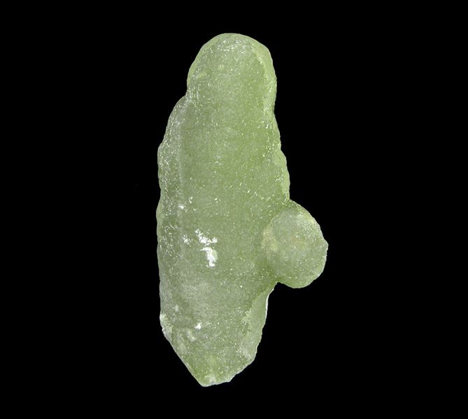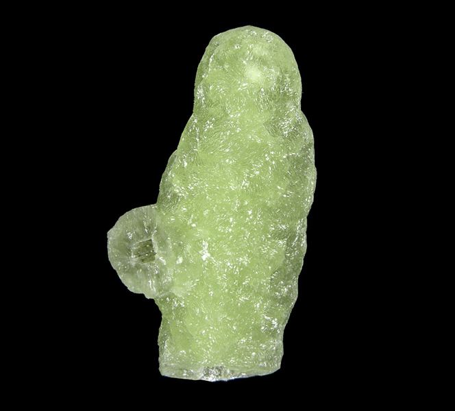 A classic, thick, single finger-shaped cast of Prehnite after Anhydrite with good gemminess and luster on the display side, and a slight coating of a secondary clay mineral on the back. The side of the piece has a second spherical aggregate that was contact upon extraction from the pocket. The undeData last checked on 23rd Aug 2021 - specimen may no longer be available