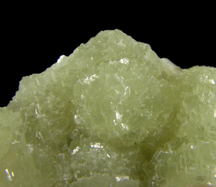 Several lustrous, gemmy, light green color spherical aggregates of Prehnite which have replaced preexisting Anhydrite. There is a slight coating on the Prehnite, but does not necessarily detract from the overall quality of the piece. The underside of the piece features white, micro “Phacolite”Data last checked on 23rd Aug 2021 - specimen may no longer be available