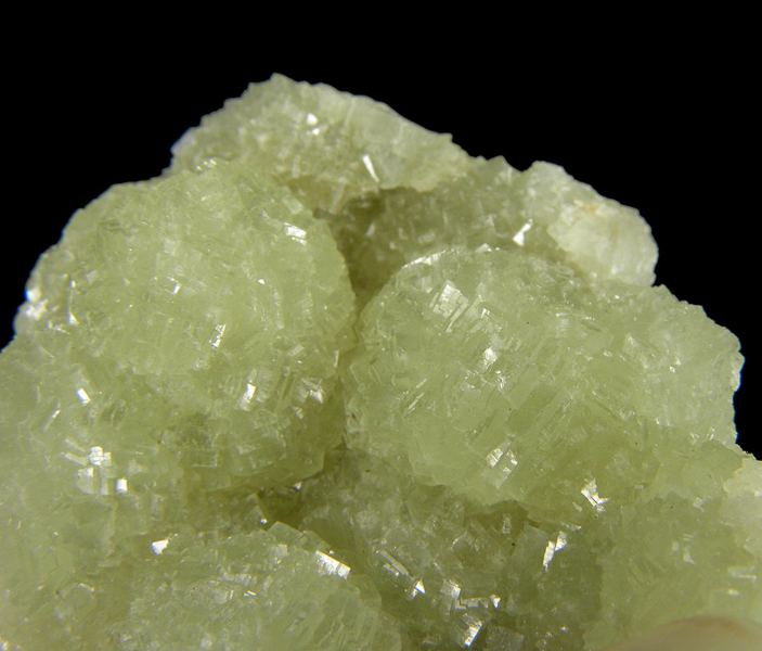 Several lustrous, gemmy, light green color spherical aggregates of Prehnite which have replaced preexisting Anhydrite. There is a slight coating on the Prehnite, but does not necessarily detract from the overall quality of the piece. The underside of the piece features white, micro “Phacolite”Data last checked on 23rd Aug 2021 - specimen may no longer be available