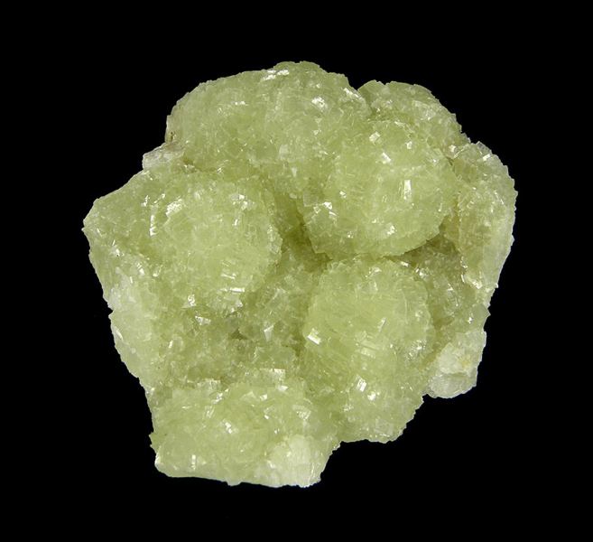Several lustrous, gemmy, light green color spherical aggregates of Prehnite which have replaced preexisting Anhydrite. There is a slight coating on the Prehnite, but does not necessarily detract from the overall quality of the piece. The underside of the piece features white, micro “Phacolite”Data last checked on 23rd Aug 2021 - specimen may no longer be available