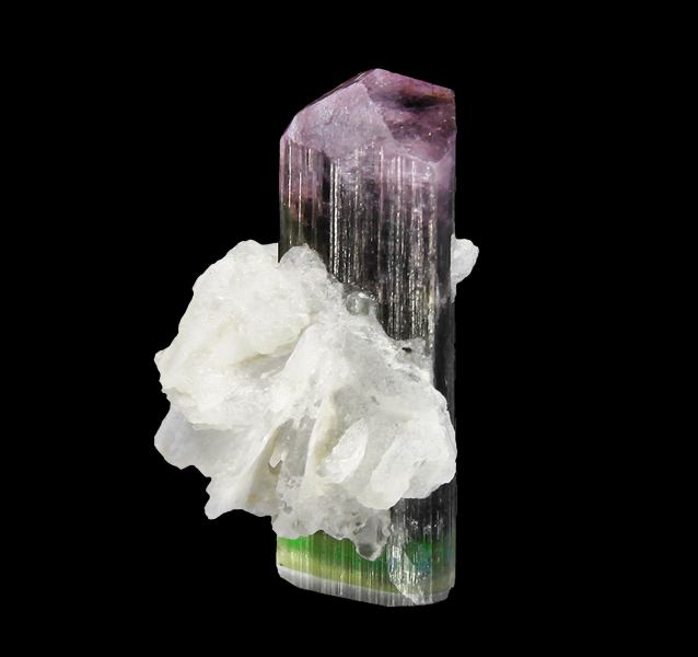 A wonderful, doubly-terminated, polychrome Tourmaline crystal with Albite from the most famous Tourmaline locality in Pakistan. I have seen many Tourmaline specimens from Stak Nala for many years and the one characteristic that many of them lacked was decent color. The crystal on this specimen featData last checked on 23rd Aug 2021 - specimen may no longer be available