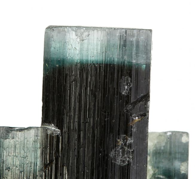 Tourmalines are certainly among the most popular species for collectors, and no matter how many one encounters, a good one will always draw attention. This beautiful specimen has a striking color combination with gemmy colorless Achroite terminations, which give way to a stunning teal/blue color thData last checked on 23rd Aug 2021 - specimen may no longer be available
