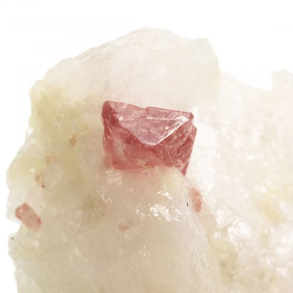A superb, sharp, lustrous, gemmy, fine reddish-pink colored twinned crystal of Spinel measuring 1.8 cm is proudly sitting atop white marble matrix. A couple of secondary complimenting Spinels are visible on the specimen to really round it out. The piece is not only fine quality and aesthetic, but sData last checked on 23rd Aug 2021 - specimen may no longer be available